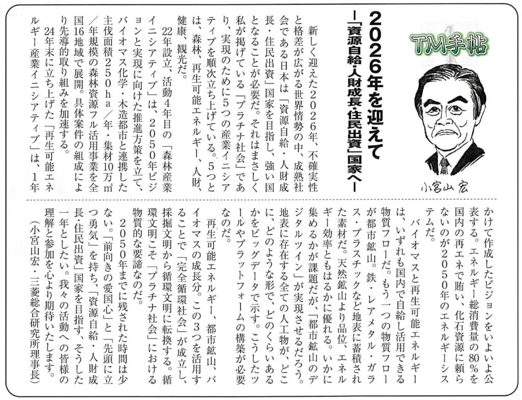 財界の小宮山による連載記事「TM手帖」に、プラチナ構想ネットワークの取り組みに関する記事が掲載されました。
